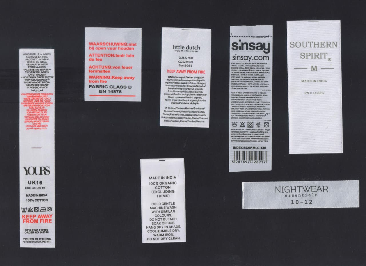 Soft printed labels with premium print quality, perfect for brand and care labels in garments.